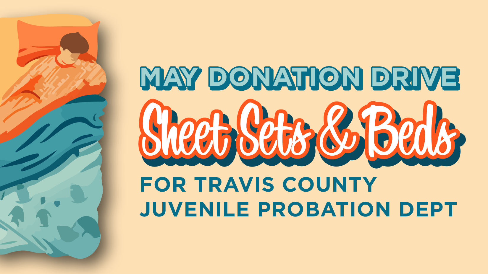 This month we're donating twin sheet sets (fitted/flat/pillowcase) and raising funds for mattresses and bed frames for Travis County Juvenile Probation Department!